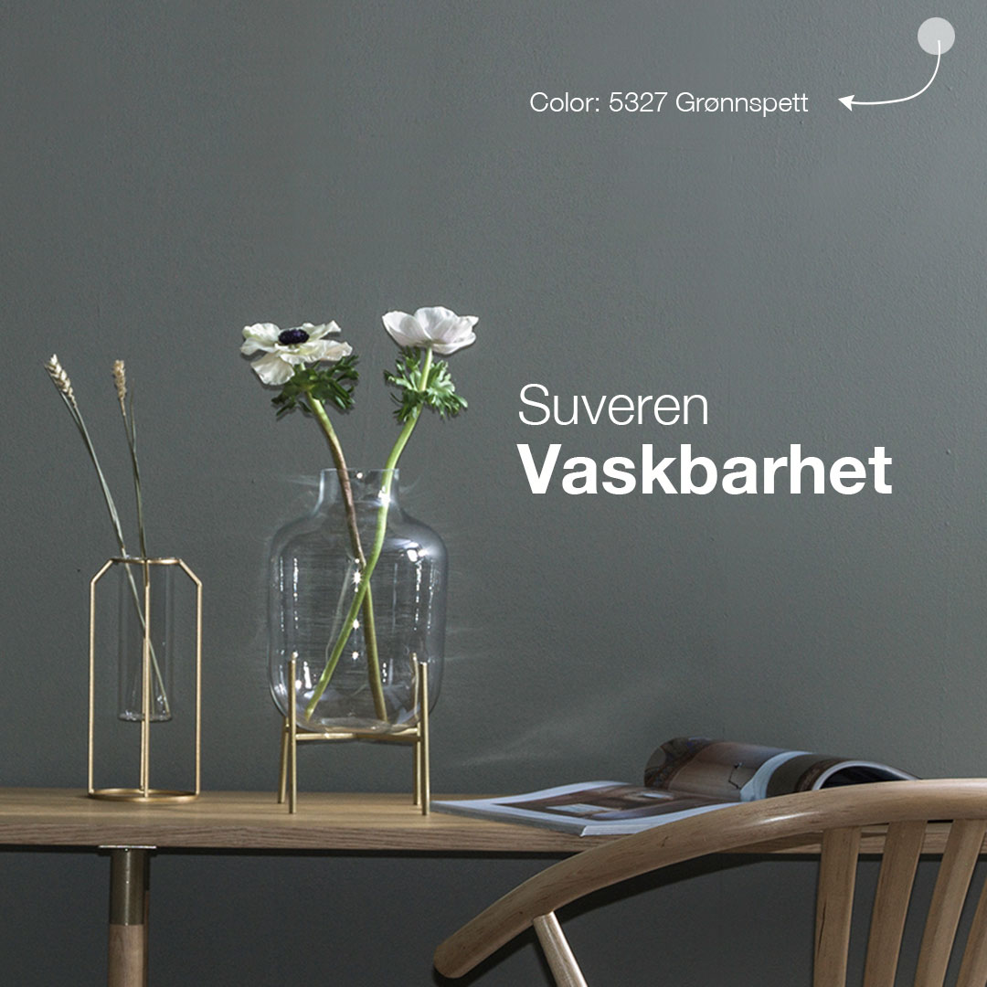 Mange ønsker seg det matte uttrykket, men velger ofte en maling med glans, da det er enklere å rengjøre. Det behøver du ikke lenger. Dekso 1 Ultramat er nemlig suverent vaskbar, slik at man enkelt kan fjerne flekker og smuss med en fuktig kost eller klut.